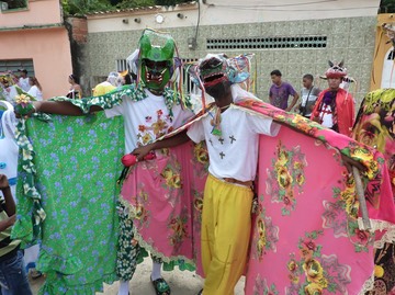 Ocumare is a small town on the Venezuelan coast in the state of Aragua. This was an area where many African slaves were sent during the colonial period, and it retains a strong African feel to this day. The two most important celebrations of the year are the feast of San Juan (St John the Baptist) and the Diablos Danzantes (Dancing Devils), both of which are famous across Venezuela and beyond. San Juan sees several days and nights of processions with drumming, singing and dancing, including a “pilgrimage” down to the sea at La Boca. The Diablos Danzantes takes place on a single day, Corpus Christi, though rehearsals start months beforehand; here the focus is firmly on the dancing-procession, though it is accompanied by simple music on cuatro and maracas.