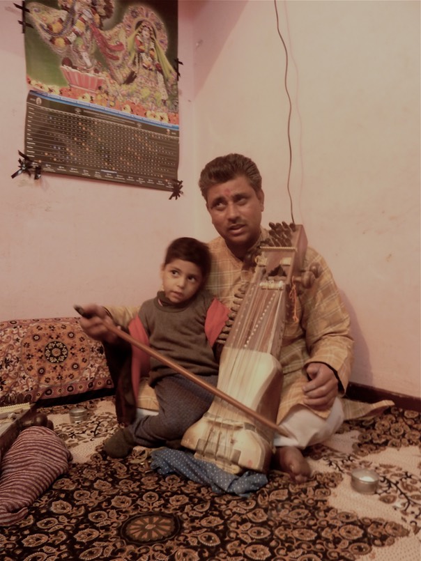 Gana Shyam and Madan Lal are the sons of the late sarangi master Bapu Lal Shishodiya, players of sarangi and tabla respectively. Various sons and daughters are learning sarangi and tabla.