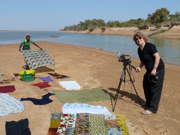 Lucy filming Ne singing while washing clothes at the Niger, 2011