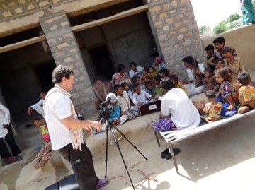Nicolas with Langa musicians in Barnava, Rajasthan