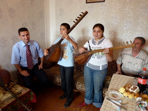 Neymat Gasimly teaching Elchin Veliyev (1996) and sister Leyla Veliyeva with father Nariman Veliyev, Baku September 2009