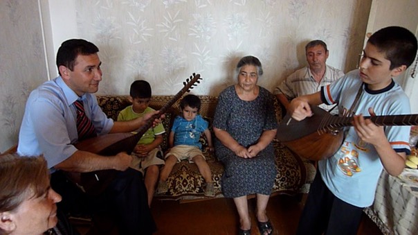 Neymat Gasimly teaching Elchin Veliyev (also grandmother Tukezban Veliyeva, great aunt Basti Mustafayeva, Nariman Veliyev