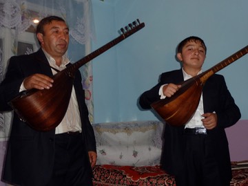 Perviz Jafarov (1997) with father professional ashiq Mubariz Jafarov, village Parakend September 2009