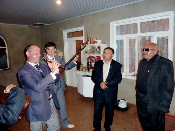 Mubariz Jafarov enjoying music with friends, village Parakend September 2009