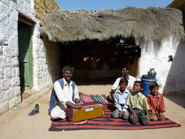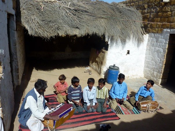 Sachu Khan Manganiyar singing with kids, Hamira village February 2010